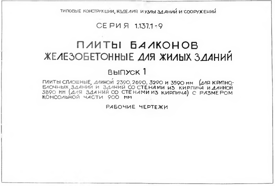 Серия 1.137.1-9. Плиты балконов железобетонные для жилых зданий
