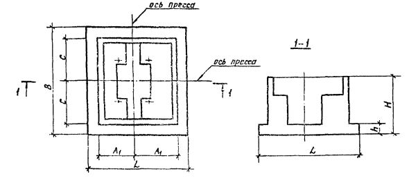 Применяются унифицированные фундаменты при строительстве горячештамповочных кривошипных прессов. Конструкции рассчитаны на эксплуатацию в различных типах грунта: пески, пески суглинки и глины, крупноблочные грунты. Многообразие типоразмеров позволяет использовать конструкции в ряде типовых проектов. Элементы могут отличаться размерами нижней части, но верхний блок всегда остается неизменным. Это связано с тем, что конструкция способна учитывать деформационные характеристики грунта, на котором планируется установка. Изделия запроектированы на модели прессов КБ 8544 и КО 4.015.848, выпускаемые различными организациями и применяемые при строительстве на грунтах с модулем деформации не более 100 кгс/см2. Допускается установка конструкций на естественное и свайное основание. Запроектированные фундаменты рассчитаны на прессы с усилием 2500 тонн сил (модель КБ 8544), а также под пресс с усилием 6300 тонн сил (модель 4.015.848).