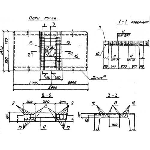 Ло 18/2  Лотки теплотрасс с отверстием Серия 3.006.1-2/87.